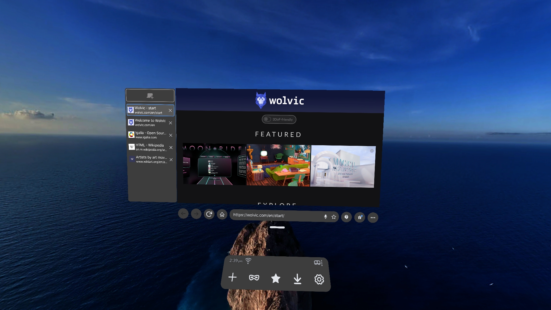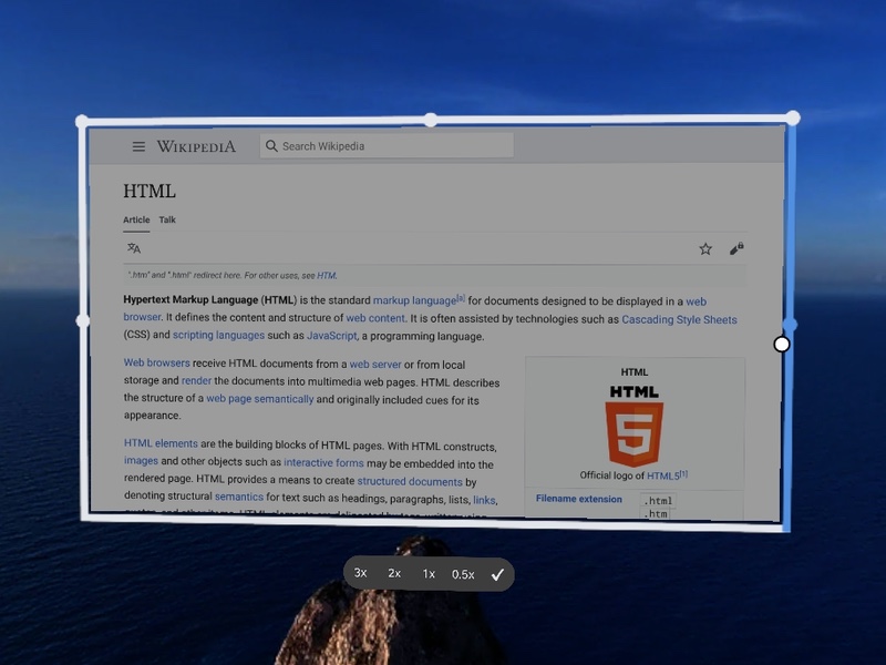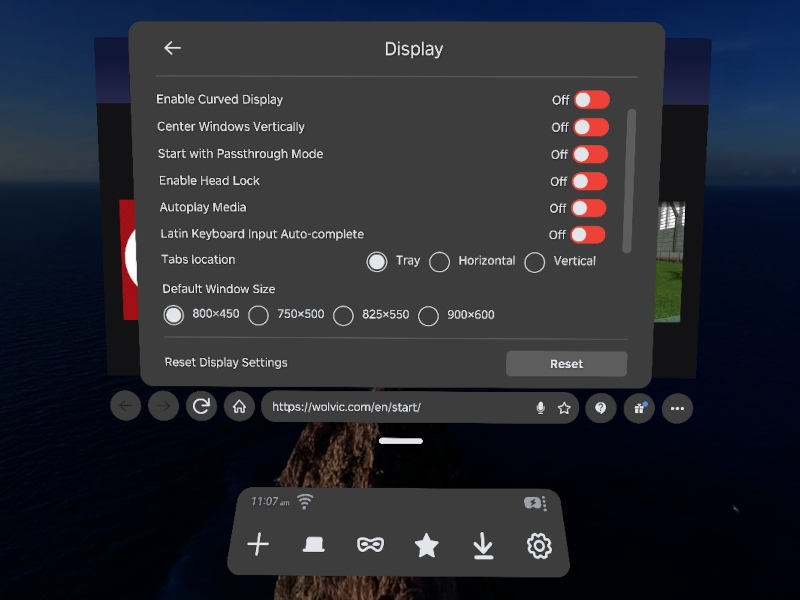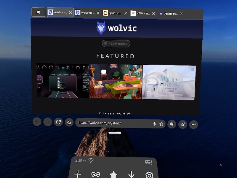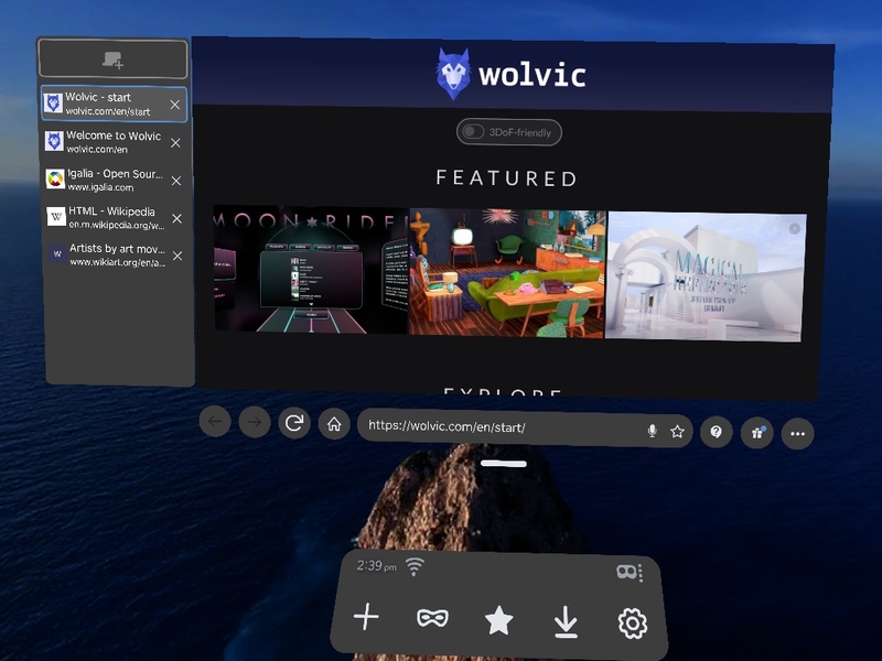 In this version, window management has taken some big steps forward. With the move bar, you can easily move the Wolvic window (or set of windows) to anywhere you want in the environment, and then leave it there.