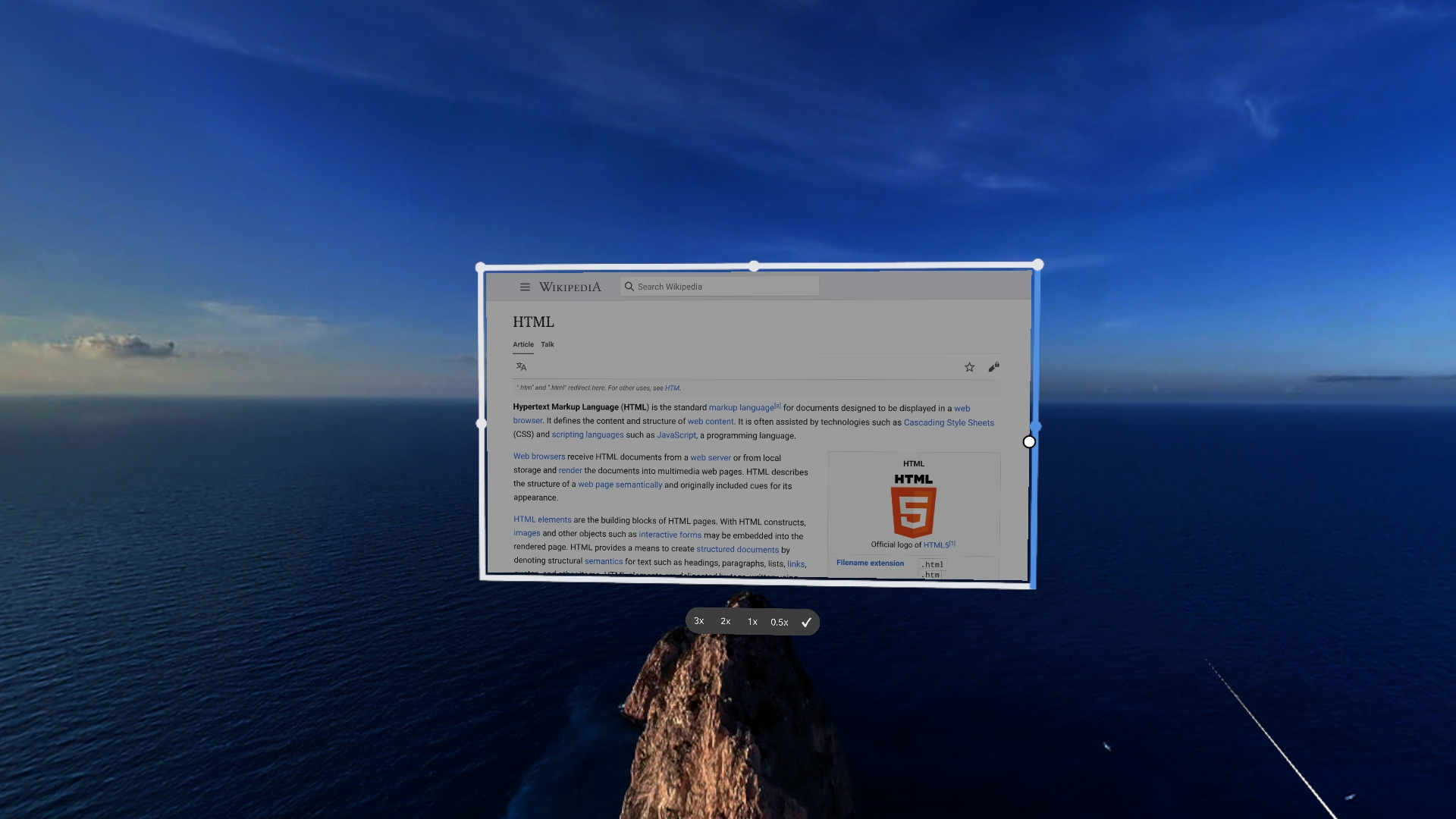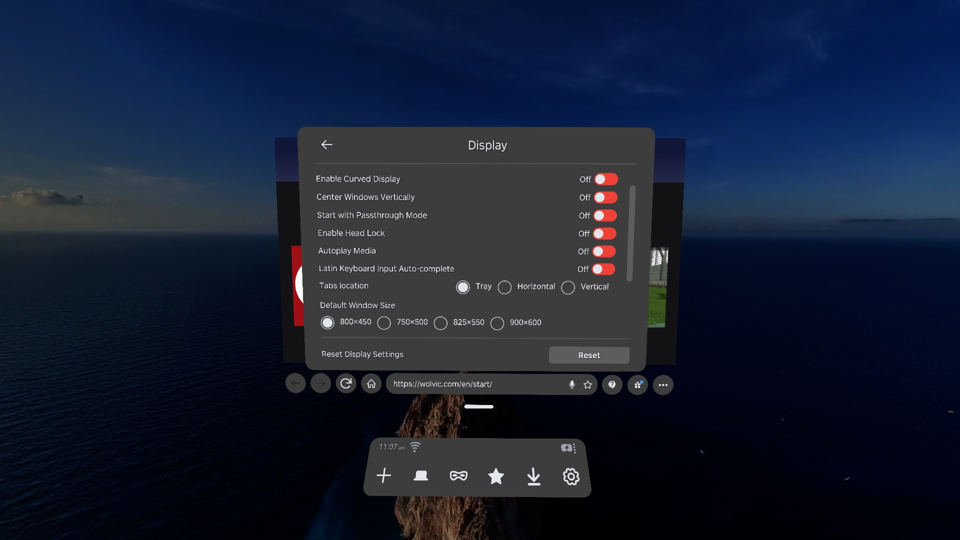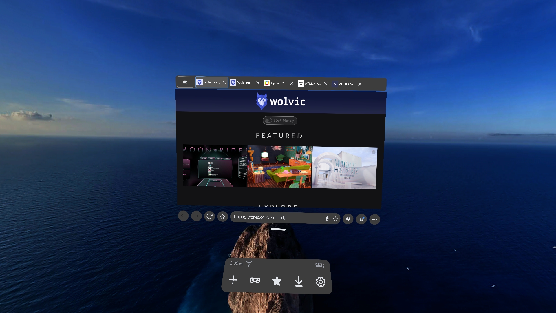 In this version, window management has taken some big steps forward. With the move bar, you can easily move the Wolvic window (or set of windows) to anywhere you want in the environment, and then leave it there.